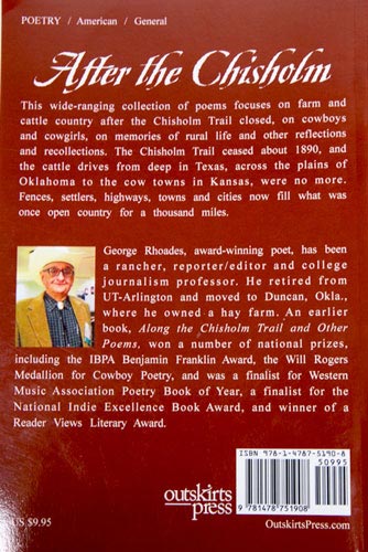“After the Chisholm” earned three awards in 2016, is a selection of poems in three sections: Cowboys and Cowgirls; Farm and Rural Memories; Other Observations and Recollections. George takes a look back to when the Chisholm Trail cattle drives ended in the late 1880s. This book won the Will Rogers Bronze Medallion for Cowboy Poetry in October 2016. It also won first-place in Reader Views Literary Award and of the Inside Scoop Award for Most Innovative Poetry Book of 2016.